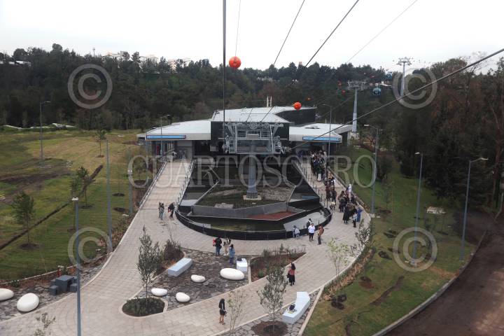 CIUDAD DE MÉXICO, 24SEPTIEMBRE2024. Se llevó a cabo la inauguración de la Línea 3 del Cablebús que corre del Pueblo de Santa Fe a el Complejo Cultural Los Pinos. Estación Cineteca Chapultepec / Bodega de Arte. FOTO: EDGAR NEGRETE LIRA/CUARTOSCURO.COM