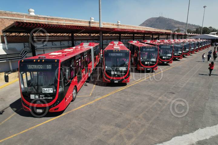 Claudia Sheinbaum, Jefa de Gobierno, encabezó el banderazo a las 50 unidades del Metrobús ciento por ciento eléctricas que recorrerán la Línea 3 de este transporte que corre de Tenayuca a Santa Cruz Atoyac.
