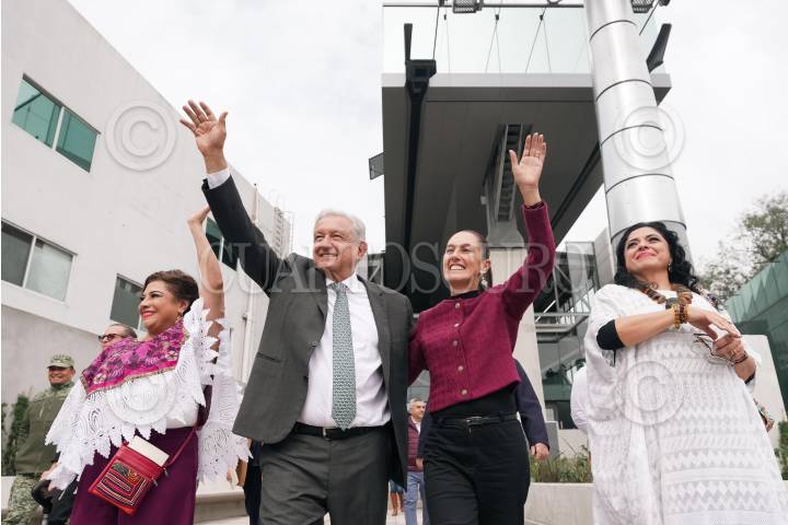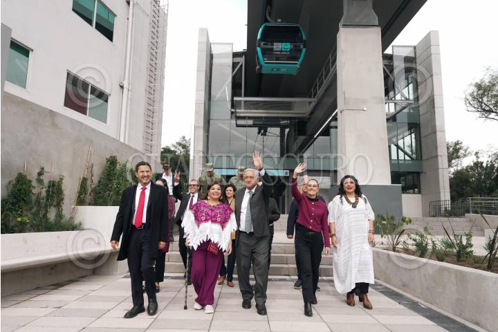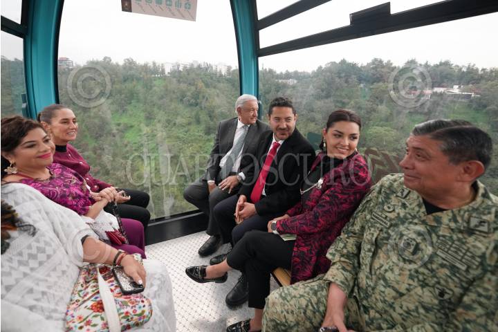 CIUDAD DE MÉXICO, 24SEPTIEMBRE2024.- Clara Brugada, Jefa de Gobierno Electa; Claudia Sheinbaum, Presidenta Electa de México; Andrés Manuel López Obrador, Presidente de México; Marti Batres, Jefe de Gobierno; Daniela Cordero Arena, esposa de Batres, y Luis Cresencio, secretario de la Defensa, encabezaron la puesta en marcha del Cablebus Línea 3, que va del Complejo Cultural de Los Pinos hasta el Pueblo Viejo de Santa Fe. FOTO: PRENSA CLAUDIA SHEINBAUM/CUARTOSCURO.COM