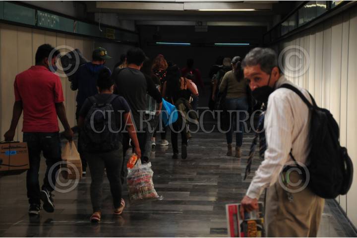 Usuarios del metro caminan en la estación Jamaica de la Línea 4, esta línea dejó de funcionar 3 días por el incendio en las oficinas centrales del metro.