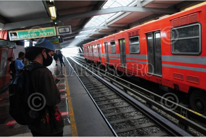 Un joven espera el metro en la estación Consulado de la Línea 4,usuarios de este transporte tienen que esperar entre 6 y 9 minutos al paso del convoy.