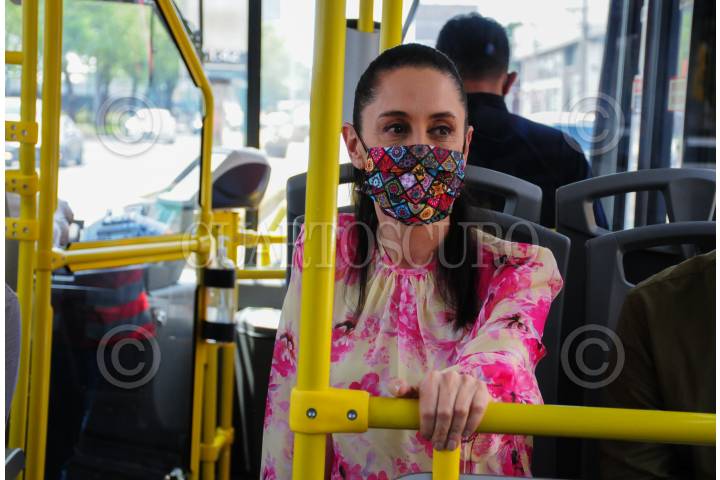 Claudia Sheinbaum aborda el Metrobús de la L4 del Metrobús.