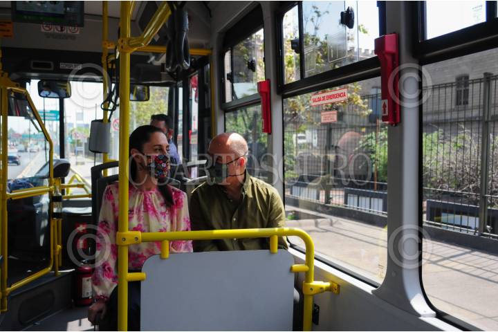 Claudia Sheinbaum, durante el recorrido en el Metrobús.