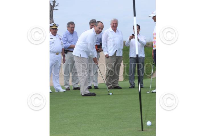 BAHIA DE BANDERAS, NAYARIT, 06MARZO2010.- Felipe Calderón Hinojosa, Presidente de México durante la inauguración del campo de Golf Litibu. FOTO: ALFREDO GUERRERO/CUARTOSCURO.COM