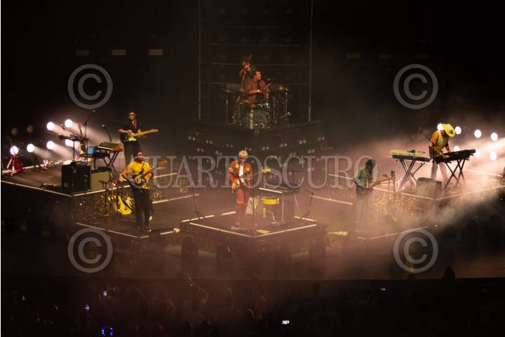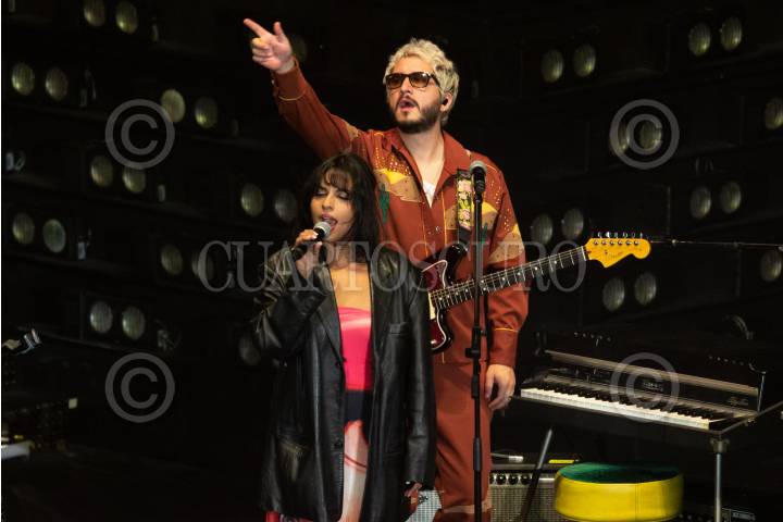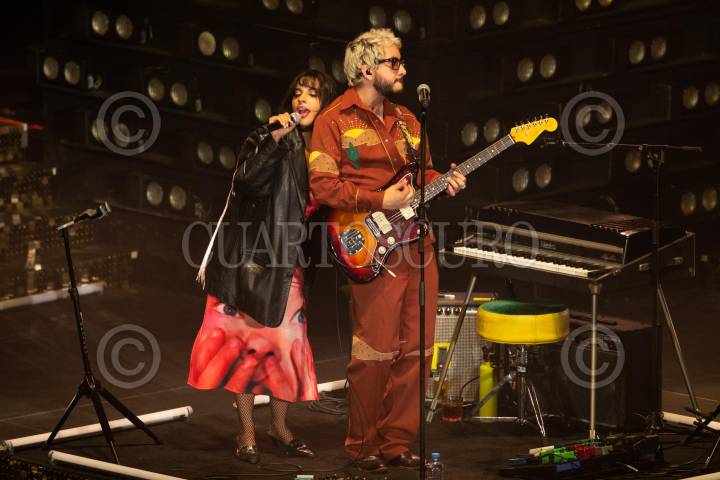 CIUDAD DE MÉXICO, 26JULIO2025.- Fernando Bueno, guitarrista de Little Jesus, banda mexicana de indie rock, durante su presentación esta noche en el Palacio de los Deportes. FOTO: MARIO JASSO/CUARTOSCURO.COM