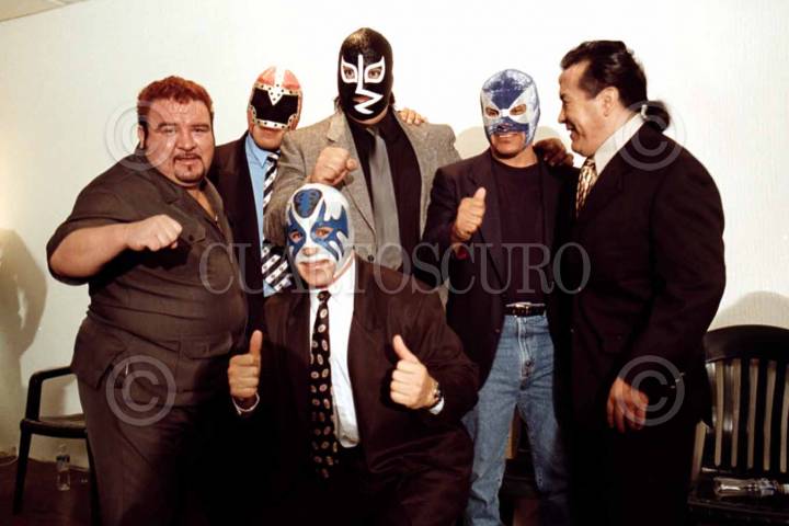 MEXICO D.F. 30AGOSTO2007.- Luchadores estrella integrantes del Consejo Mundial de Lucha Libre se reunieron donde planearon nuevos espectáculos. Blue Panther, Ultimo Guerrero y Lizmark jr. estuvieron presentes. FOTO: ISAAC ESQUIVEL/CUARTOSCURO.COM
