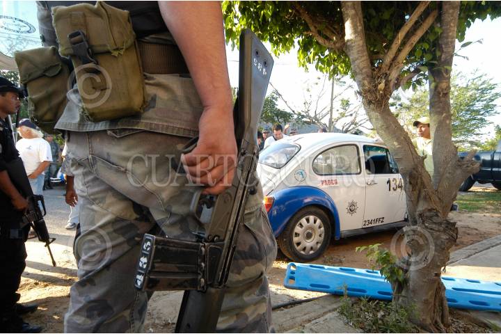 ACAPULCO, GUERRERO 24ENERO 2010.- Fue encontrado sin vida el cuerpo de un Chofer del TAXI azul placas 23-41-FFZ en la avenida fracionamiento Colegio Militar maz-69 colonia cumbres de llano largo donde acudieron Militares y ministeriales por la cercania del fracionamiento de las Brisas. FOTO: BERNARDINO HERNÁNDEZ/CUARTOSCURO.COM
