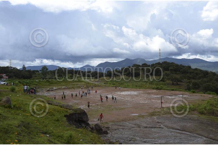 ATLIXTAC, GUERRERO, 28SEPTIEMBRE2014.- Pobladores de Atlixtac juegan fútbol en un terreno baldío, ya que no cuentan con un centro deportivo. FOTO: BERNANDINO HERNÁNDEZ /CUARTOSCURO.COM