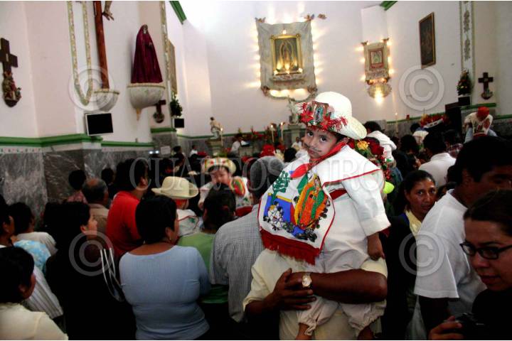 OAXACA, OAXACA 12DICIEMBRE2006.- En la Iglesia de Guadalupe, ubicada en el parque Juarez del llano, se llavan acabo las celebraciones del día de la Virgen de Guadalupe.En la imagen un niño es vestido con ropa de manta como Juan Diego. FOTO: MAX NUÑÉZ /CUARTOSCURO.COM