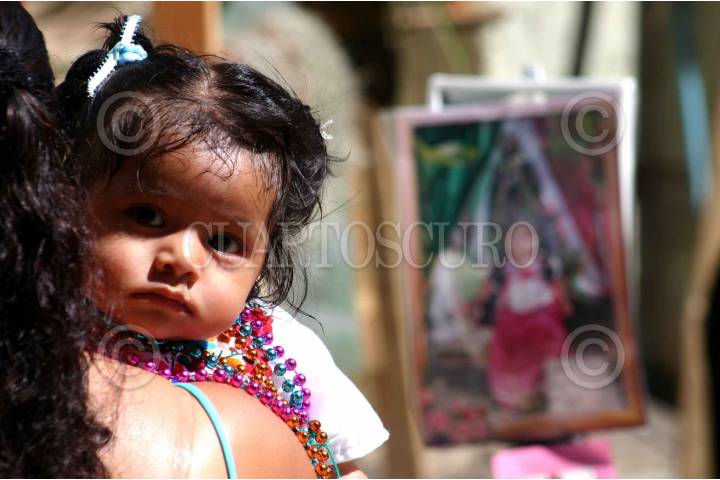 OAXACA, OAXACA 12DICIEMBRE2006.- En la Iglesia de Guadalupe, ubicada en el parque Juarez del llano, se llavan acabo las celebraciones del día de la Virgen de Guadalupe.En la imagen una niña es vestida con ropa de manta como Juan Diego. FOTO: MAX NUÑÉZ /CUARTOSCURO.COM