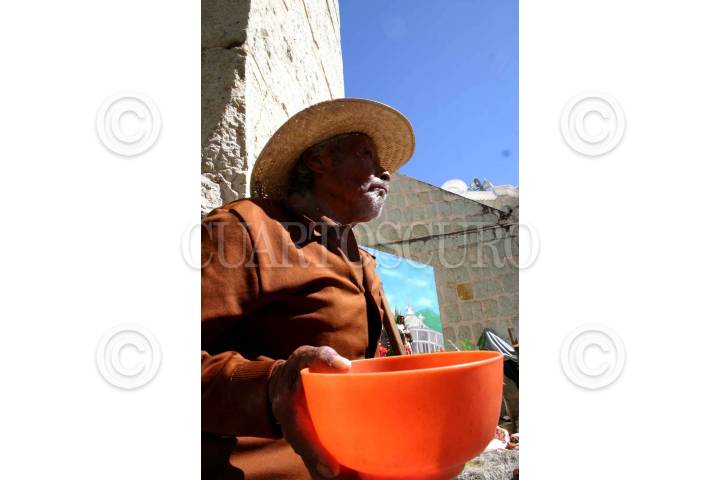 OAXACA, OAXACA 12DICIEMBRE2006.- En la Iglesia de Guadalupe, ubicada en el parque Juarez del llano, se llavan acabo las celebraciones del día de la Virgen de Guadalupe.En la imagen un hombre de edad avanzada pide limosna a las afueras de la Iglesia. FOTO: MAX NUÑÉZ /CUARTOSCURO.COM
