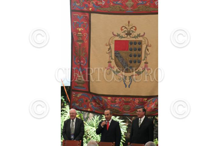 MÉXICO, D.F. MARZO2007.- El presidente Felipe Calderón visitó el Instituto Panamaericano de Alta Dirección de Empresa en su 40 aniversario. En la imagen con Carlos Garciarce Ramírez presidente de la junta de gobierno de dicha institución y Carlos Llano Cifuentes fundador del IPADE. FOTO: PAOLA HIDALGO/CUARTOSCURO.COM