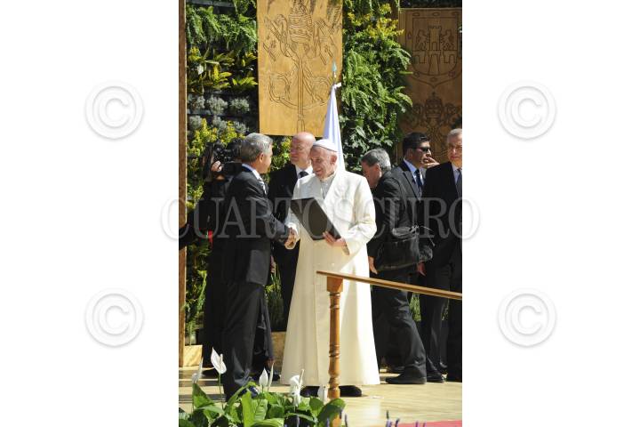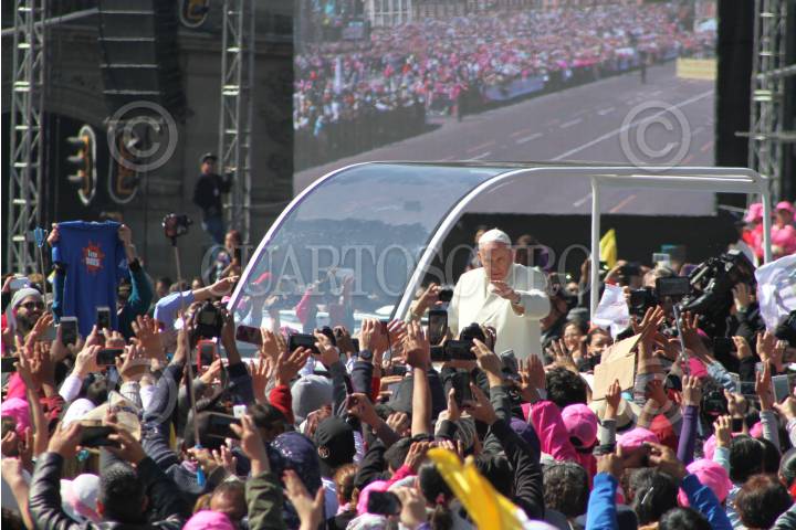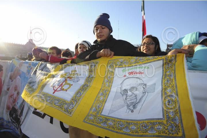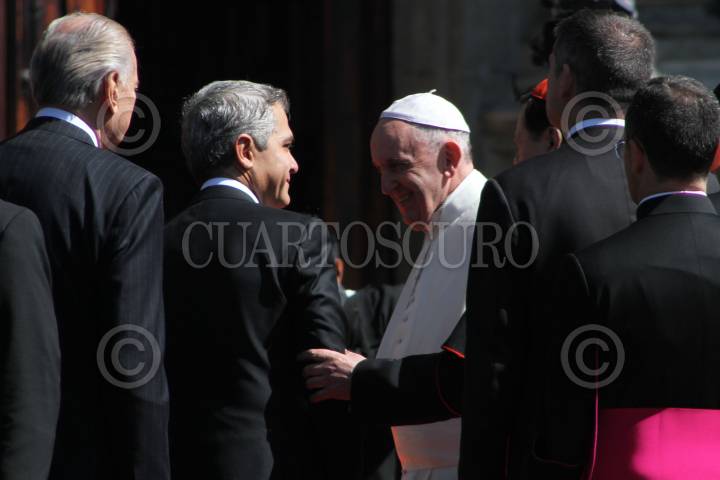 CIUDAD DE MÉXICO, 13FEBRERO2016.- El Papa Francisco recorrió el zócalo capitalino para recibir las llaves de la ciudad de manos de Miguel Ángel Mancera, jefe de Gobierno de la Ciudad de México. FOTO: CUARTOSCURO.COM
