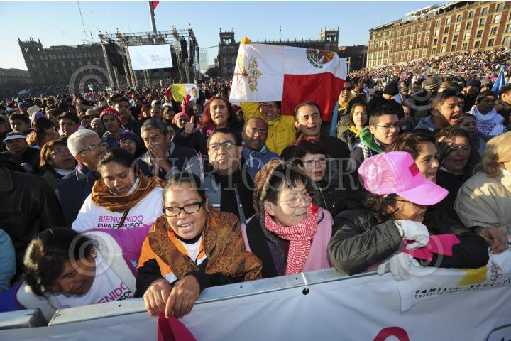 CIUDAD DE MÉXICO, 13FEBRERO2016.- El Papa Francisco recibió las llaves de la ciudad que los distinguen como huésped distinguido de la Ciudad de México. El Jefe de Gobierno Miguel Ángel Mancera junto con otros miles de capitalinos recibieron al Sumo Pontífice que dio la vuelta en la plancha del Zócalo en su papamóvil. FOTO: ARMANDO MONROY /CUARTOSCURO.COM