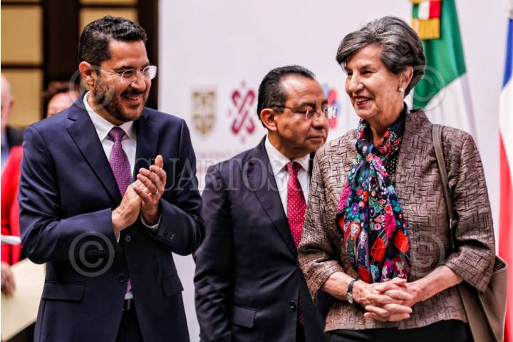 CIUDAD DE MÉXICO, 10ABRIL2025.- La jefa de gobierno, Clara Brugada, entregó las llaves de la ciudad a la vicepresidenta de Colombia, Francia Márquez, en el evento la acompaño la presidenta de la Mesa Directiva del congreso capitalino,Martha Ávila y el magistrado presidenta del Poder Judicial de la capital, Rafael Guerra. FOTO: DANIEL AUGUSTO/ CUARTOSCURO.COM