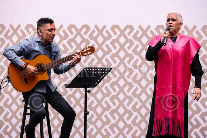 Eugenia León recitó un par de canciones en el marco de la ceremonia en donde se nombró visitantes distinguidos a los senadores chilenos, María Isabel Allende Bussi y Miguel Insulza Salinas.