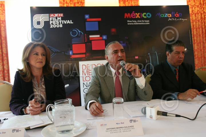 MÉXICO, D.F., 19NOVIEMBRE2008.- Gabriela Vazquez, Antonio Ibarra Salgado, Secretario de Turismo de Sinaloa y Raúl Llera, Subsecretario de Promoción Turistica de Sinaloa, ofrecieron una conferencia de prensa para presentar el festival AXN Film Festival 2008 que se realizará en la ciudad dfe Mazatlán. FOTO: MOISÉS PABLO/ CUARTOSCURO.COM