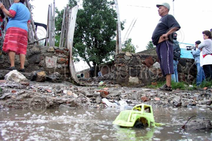 Jiutepec, Morelos 24 Julio 2004.- Los niños Uriel González de 9 años y Sauri González de aproximadamente 2 años de edad murieron a causa del derrumbe de una de las bardas de su casa a causa de las intensas lluvias que azotaron a Jiutepec, Morelos. FOTO: Diana Peña/CUARTOSCURO.COM