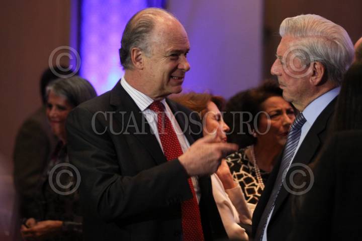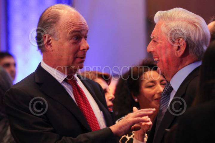 MÉXICO, D.F., 24NOVIEMBRE2011.- Mario Vargas Llosa, escritor, y Ricardo Salinas Pliego, presidente de Grupo Salinas, acudieron a la premiación del sexto concurso de ensayos "Caminos de la Libertad". FOTO: IVÁN STEPHENS/CUARTOSCURO.COM