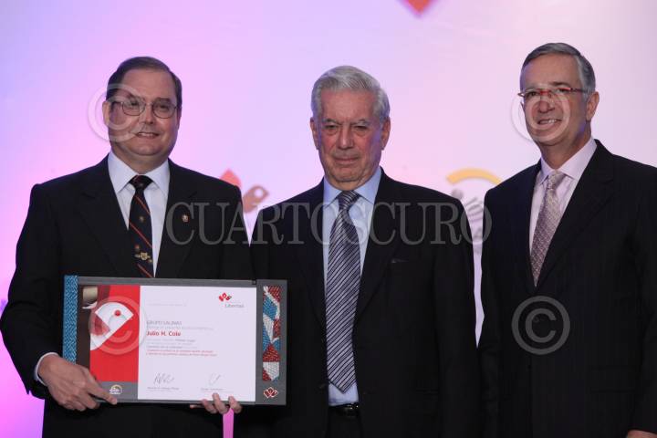 MÉXICO, D.F., 24NOVIEMBRE2011.- Mario Vargas Llosa, escritor, y Ricardo Salinas Pliego, presidente de Grupo Salinas, acudieron a la premiación del sexto concurso de ensayos "Caminos de la Libertad" donde Julio H Cole fue galardonado. FOTO: IVÁN STEPHENS/CUARTOSCURO.COM