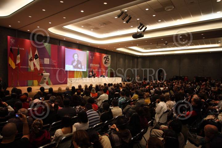 GUADALAJARA, JALISCO, 27NOVIEMBRE2011.- En el marco de la edición número 25 de la Feria Internacional del Libro (FIL), se llevó a cabo la apertura del salón literario en el cual estuvieron presentes los escritores Herta Muller y Mario Vargas Llosa, en "Dos Nobel, una conversación". En dicho evento y como presentante de los reconocidos escritores, estuvo Juan Cruz. FOTOS- FERNANDO CARRANZA GARCIA/CUARTOSCURO.COM