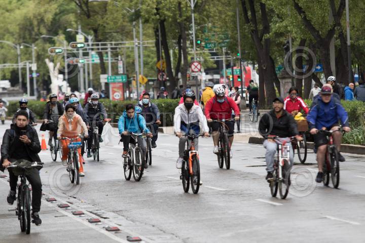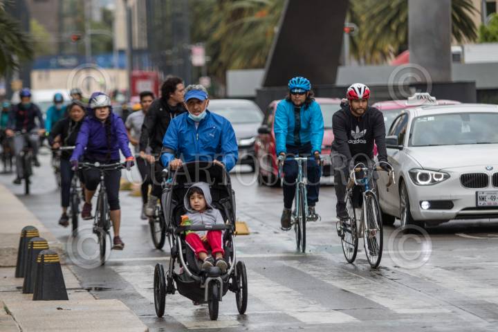 Capitalinos salieron a rodar al paseo ciclista de avenida Reforma, pese la llovizna que prevaleció este domingo.