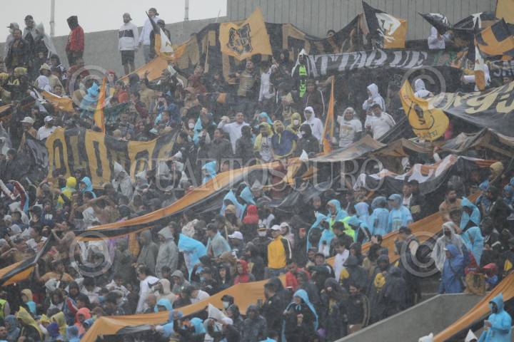 Fuerte lluvia se sintió sin que eso desanimara a los aficionados que asistieron al partido amistoso de fútbol entre Pumas vs Celta de Vigo, como parte de la gira del equipo español por Norteamérica, disputado en el estadio Olímpico Universitario.