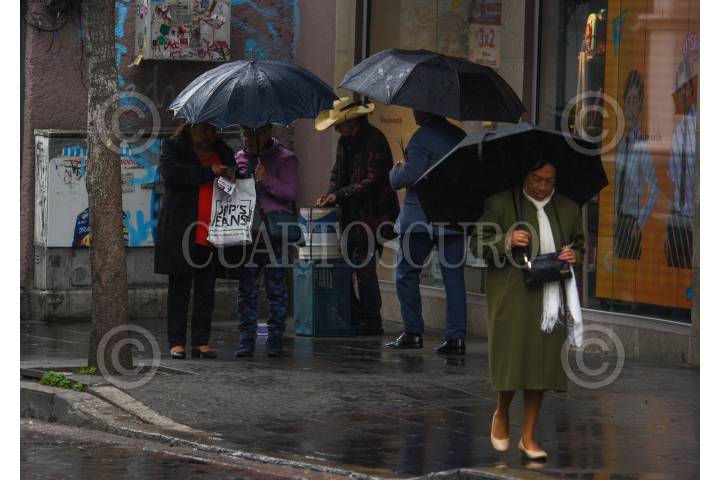 TOLUCA, ESTADO DE MÉXICO, 20JUNIO2025.- Con paraguas, impermeables y bien abrigados es como la gente de la capital mexiquense salió a las calles durante este día en donde prevalecieron la lluvia y bajas temperaturas debido Erick que se degradó a depresión tropical. FOTO: CRISANTA ESPINOSA AGUILAR /CUARTOSCURO.COM