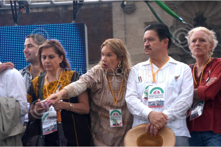 MÉXICO D.F. 16SEPTIMEBRE2006.- Marta Lucía Micher, Guadalupe Loaza y Carlos Nvarrete y Assa Critina, durante la convención nacional democratica, que se realizo en el Zócalo de la ciudad. FOTO:GUILLERMO PEREA/CUARTOSCURO.COM