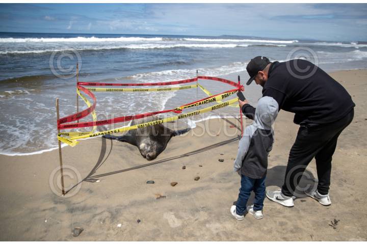 TIJUANA BAJA CALIFORNIA 16MAYO2025.- Un lobo marino y lo que parece ser su cría terminaron varados sin vida en Playas de Tijuana. Ambos fueron enterrados en el lugar, pero a los pocos días la marea los desenterró. Hasta la fecha, las autoridades no han vuelto a atender la situación, por lo que vecinos de la zona exigen que se tomen las medidas correspondientes. Luis Fernando Acosta, vecino de los condominios Costa en Playas de Tijuana, comentó que hace casi dos semanas aparecieron en la orilla de la playa un lobo marino y lo que parece ser una cría, ambos sin vida, por lo que llamaron a las autoridades para que tomaran las medidas pertinentes. Señaló que llegaron al lugar dos trabajadores para hacer un hoyo donde los enterraron; sin embargo, no fue lo suficientemente profundo, ya que a los pocos días el mar desenterró los cuerpos. Según Luis, los vecinos y usuarios de la playa se encuentran preocupados porque el cuerpo del mamífero está muy hinchado y podría reventarse en cualquier momento, además de que los cuerpos generan un olor muy desagradable. A pesar de que han solicitado en varias ocasiones el apoyo de las autoridades, no han recibido respuesta para atender la situación, por lo que exigen que se tomen las medidas necesarias para no afectar a los usuarios de la playa y evitar que las personas se acerquen demasiado a los cuerpos. Desde el mes de febrero, se han registrado múltiples casos de mamíferos acuáticos varados en las costas de Playas de Tijuana, Rosarito y Ensenada, derivados de la intoxicación por ácido domoico. Al menos 40 mamíferos han perdido la vida, de acuerdo con la Procuraduría Federal de Protección al Medio Ambiente. FOTOS: LUIS BAUTISTA / CUARTOSCURO.COM