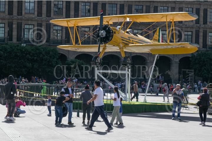 CIUDAD DE MÉXICO, 18NOVIEMBRE2024.- La SEDENA colocó una replica de una locomotora y dos aeroplanos con motivo de la ceremonia cívica del Aniversario de la Revolución Mexicana que se realizará este próximo 20 de Noviembre en el Zócalo. FOTO: MOISÉS PABLO/CUARTOSCURO.COM
