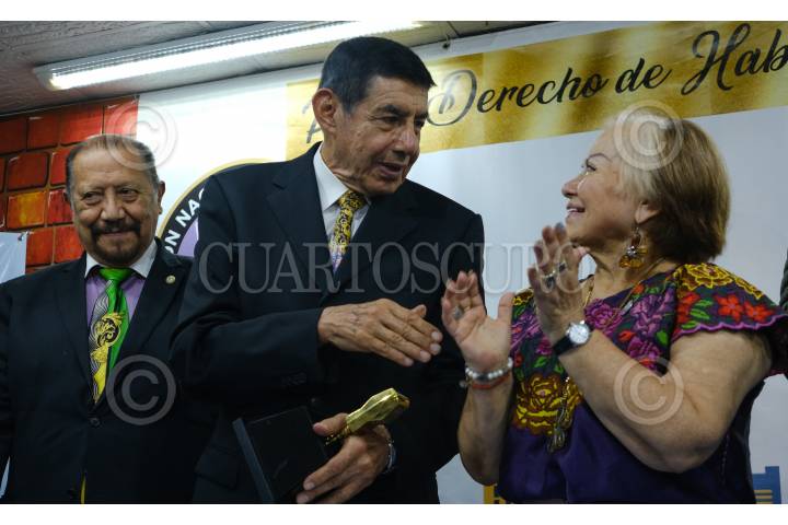 CIUDAD DE MÉXICO, 19AGOSTO2019.- El General Tomás Ángeles Dauahare recibió el Micrófono de Oro en la sede de la Asociación Nacional de Locutores de México (ANLM). FOTO: GRACIELA LÓPEZ /CUARTOSCURO.COM