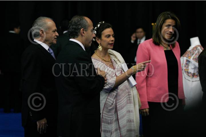 MÉXICO D.F., 10MARZO2009.- Felipe Calderón Hinojosa, Presidente de México, acompañado de su esposa Margarita Zavala, acudió al encuentro logros y avances de la Fundación Alfredo Harp Helú, A.C. FOTO: IVÁN MENDÉZ/CUARTOSCURO.COM
