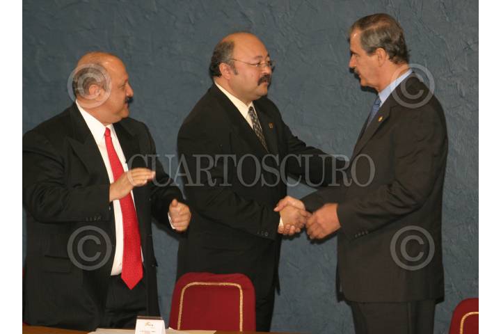 MEXICO, D.F. 29NOVIEMBRE2004.- Alejandro Mungaray, rector de la Universidad Autónoma de Baja California saluda al Presidente Vicente Fox, durante la entrega del reconocimiento "Proceso de Fortalecimiento de las Universidades, Avances y Logros". FOTO: Nelly Salas/CUARTOSCURO.COM