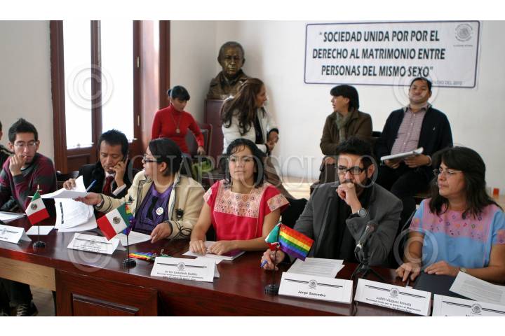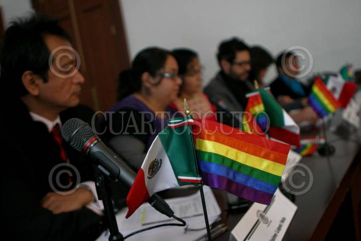 MÉXICO, D.F., 07ENERO2010.- Lol Kin Castañeda Badillo del Centro Nacional de Prevención y Control del Sida de la Sociedad Unidad por el Derecho al Matrimonio Entre del Mismo Sexo ofrecieron una conferencia de prensa en la Asamblea Legislativa del Distrito Federal. FOTO: RODOLFO ANGULO/CUARTOSCURO.COM