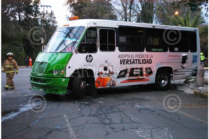 MÉXICO, D.F., 26ENERO2016.- Un camión de pasajeros chocó contra un auto particular lo que provocó que la unidad de transporte público se volcará, los hechos sucedieron en avenida Palmas y Monte Líbano en la colonia Lomas de Chapultepec. FOTO: ARMANDO MONROY /CUARTOSCURO.COM