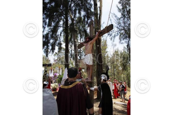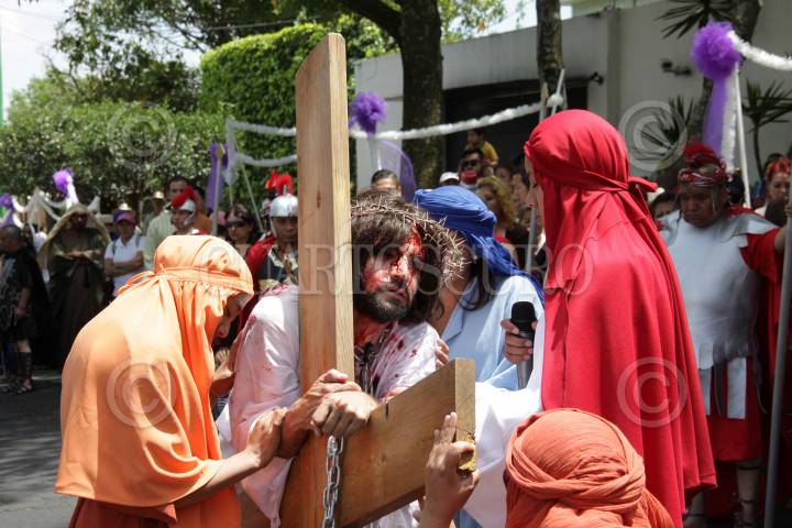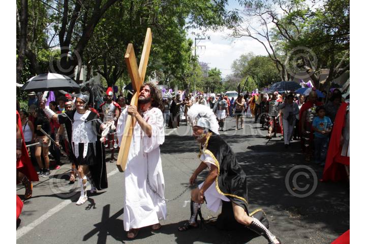CIUDAD DE MÉXICO,25MARZO2016. Desde hace seis años colonos de las Lomas de Chapultepec escenifican el viacrucis y pasión de cristo en las calles Sierra Nevada y concluyen en las inmediaciones de la Parroquia de Santa, Teresita del Niño, Jesús de dicha colonia. FOTO: ANTONIO CRUZ /CUARTOSCURO.COM