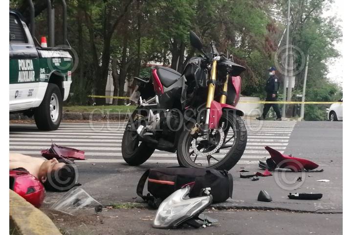 Un motociclista murió despues de ser arrollado por una camioneta blanca, en Paseo de la Reforma y Montes Auvernia, Lomas de Chapultepec.