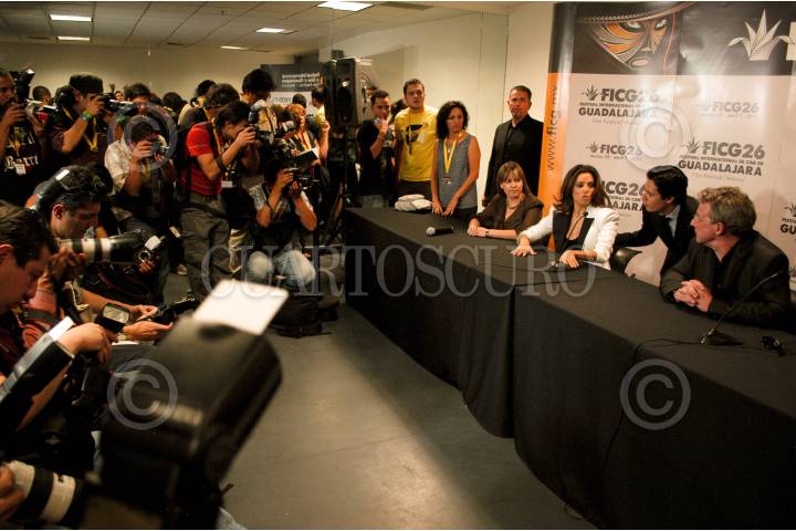 GUADALAJARA, JALISCO, 26MARZO2011.- La actriz Eva Longoria se presento ante decenas de medios de comunicación para ofrecer una conferencia como parte dela 26 edición del Festival Internacional de Cine en Guadalajara (FICG) promocionando el documental "La cosecha", dirigido por el cineasta Roberto Romani, y en el cual ella es la productora. FOTO: ADOLFO VALTIERRA/CUARTOSCURO.COM