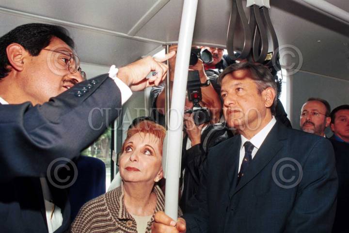 Andrés Manuel López Obrador, jefe de gobierno del D.F., inauguró el primer recorrido del autobús turístico que inicia su operación por el corredor Reforma-Centro Histórico, estuvo acompañado por Julieta Campos y Leticía Navarro, secretarías de Turismo capitalino y federal. FOTO: Oswaldo Ramírez/CUARTOSCURO.COM