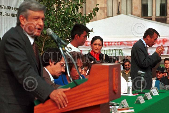 El jefe de gobierno, Andrés Manuel López Obrador, entregó dos mil becas a personas con discapacidad, en el Zócalo. FOTO: Susana Navarrete/CUARTOSCURO.COM