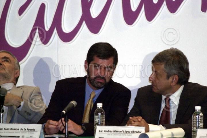 Andrés Manuel Lopéz Obrador jefe de Gobierno del DF, presidio la clausura del ciclo de mesas " La ciudad a debate: primer encuentro Sociedad y Cultura", en la cual participo Juan Ramón de la Fuente, rector de la UNAM. FOTO:Oswaldo Ramírez/CUARTOSCURO.COM