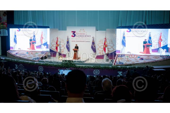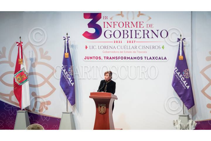TLAXCALA, TLAXCALA, 06DICIEMBRE2024.- La gobernadora de Tlaxcala, Lorena Cuellar Cisneros, presentó su tercer informe de gobierno en el cual destacó la participación en eventos internacionales que han posicionado a Tlaxcala en el escenario global y la creación de espacios públicos de gran impacto social. FOTO: ALAIN HERNÁNDEZ/CUARTOSCURO.COM