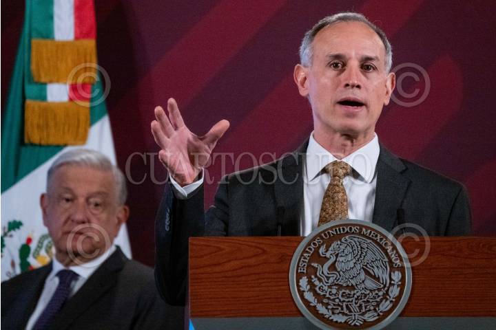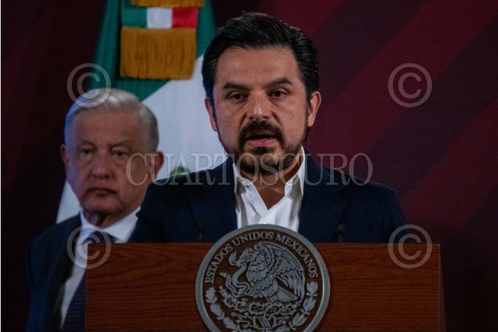 Rutilio Escandón Cadenas durante la conferencia matutina, donde se trataron los temas de salud y el programa nacional de reconstrucción del patrimonio histórico.