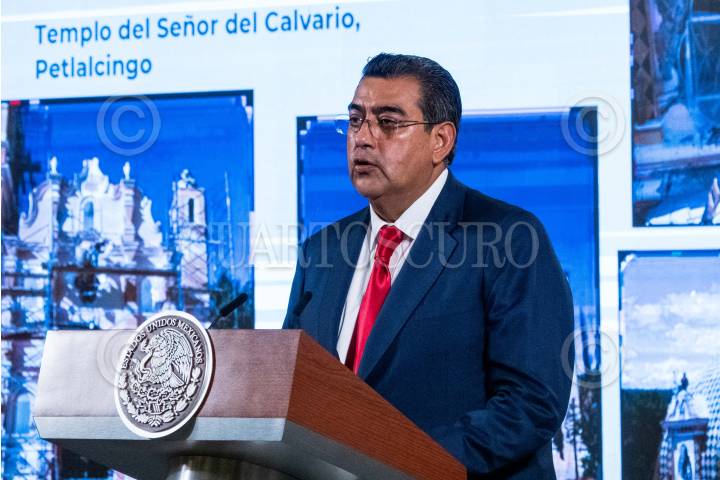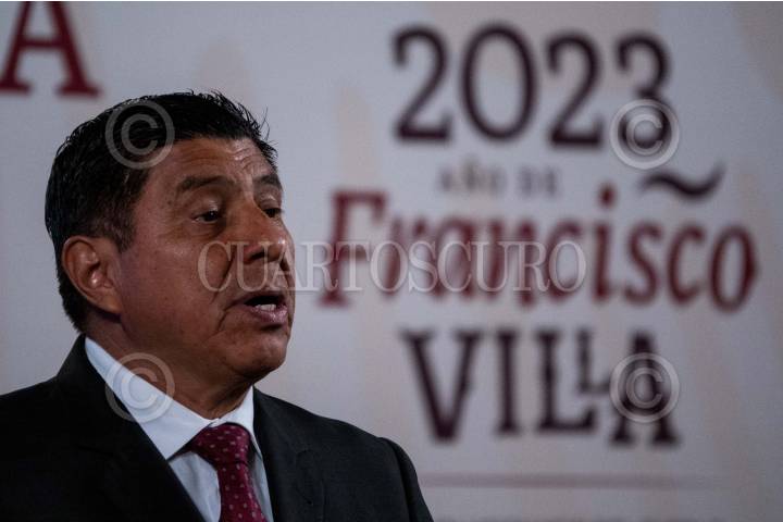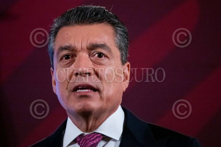 Salomón Jara Cruz durante la conferencia matutina, donde se trataron los temas de salud y el programa nacional de reconstrucción del patrimonio histórico.