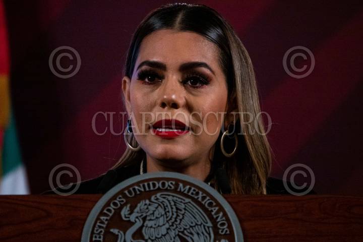 Evelyn Salgado Pineda durante la conferencia matutina, donde se trataron los temas de salud y el programa nacional de reconstrucción del patrimonio histórico.