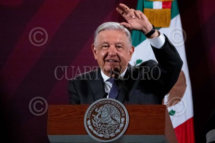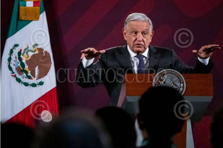 Andrés Manuel López Obrador durante la conferencia matutina, donde se trataron los temas de salud y el programa nacional de reconstrucción del patrimonio histórico.