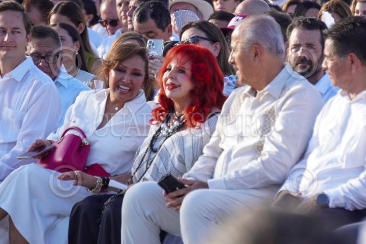 CHETUMAL, QUINTANA ROO, 09SEPTIEMBRE2024.- Las gobernadoras Lorena Cuéllar Cisneros, gobernadora de Tlaxcala, y Layda Sansores, gobernadora de Campeche, durante el Segundo Informe de Mara Lezama, mandataria de Quintana Roo. FOTO: ELIZABETH RUIZ/CUARTOSCURO.COM