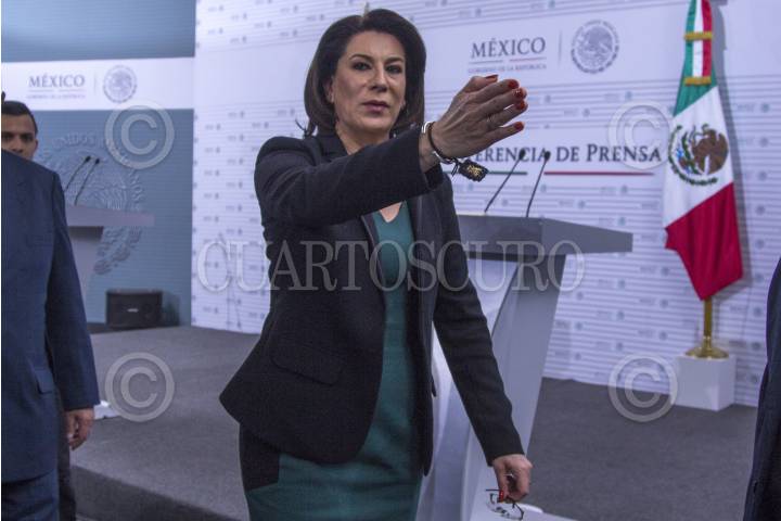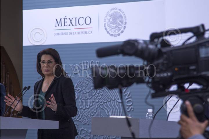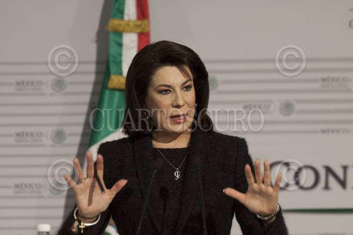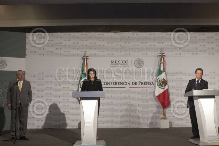 MÉXICO, D.F., 03FEBRERO2015.- Lorena Martínez, titular de la Profeco, ofreció conferencia de prensa en en el Club Naval en donde abordo el desorden normativo con el cual operan las casas de empeño, la acompañaron Roberto Calleja, coordinador operativo de Comunicación Social de la Presidencia de la República y el vocero de la Presidencia de la República Eduardo Sánchez. FOTO: MOISÉS PABLO /CUARTOSCURO.COM