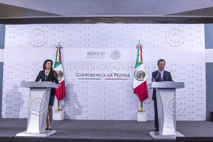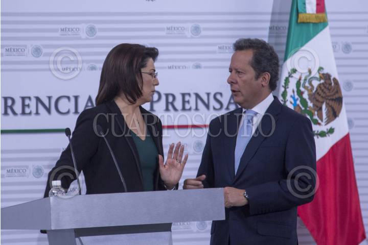 MÉXICO, D.F., 17FEBRERO2015.- Eduardo Sánchez, Vocero de la Presidencia de la República junto a Lorena Martínez, Titular de la Procuraduría Federal del Consumidor durante la presentación de la aplicación y cobertura nacional del programa Quien es Quien en los precios. FOTO: ENRIQUE ORDÓÑEZ /CUARTOSCURO.COM
